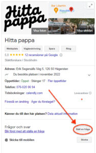 | Ställ en fråga om Hitta pappa på Google.se. Läs gärna min lista med Google-vänliga frågor som jag skulle önska att någon ställde så att jag fick möjlighet att svara! 😉 | 2 lotter oavsett antal frågor (alltså inte per fråga). |