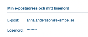 - På nästa sida ser du din e-postadress under rubriken Min e-postadress och mitt lösenord. Om det är en adress som du använder aktivt så är det bara att nu komma ihåg att det är den som är ditt användarnamn. Klart!